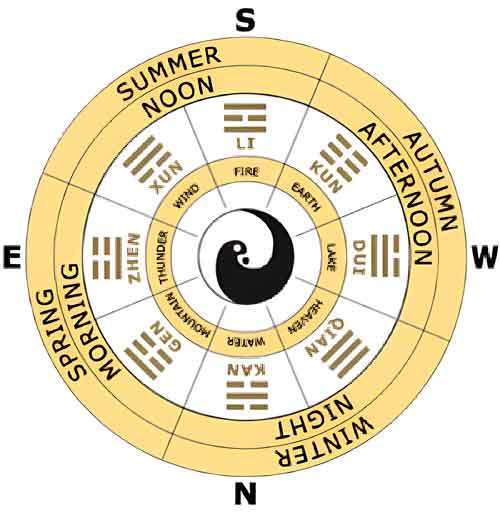 La energía de las líneas Yang, líneas continuas, es siempre ascendente, en tanto que la energía Yin, líneas partidas, es siempre descendente. De allí que se haya relacionado a unas y otras con animales y fenómenos de la naturaleza, cuya actividad está claramente orientada hacia la construcción, creación o crecimiento, o hacia la desconstrucción, destrucción, mengua y decrecimiento. La naturaleza destructiva no la dan por sí mismas las líneas sino sus relaciones. En algunos casos una línea yin es altamente favorable y potenciadora de la creación, debido a su posición, y en otros casos, una línea yang es altamente desfavorable y detonador a de la disipación.